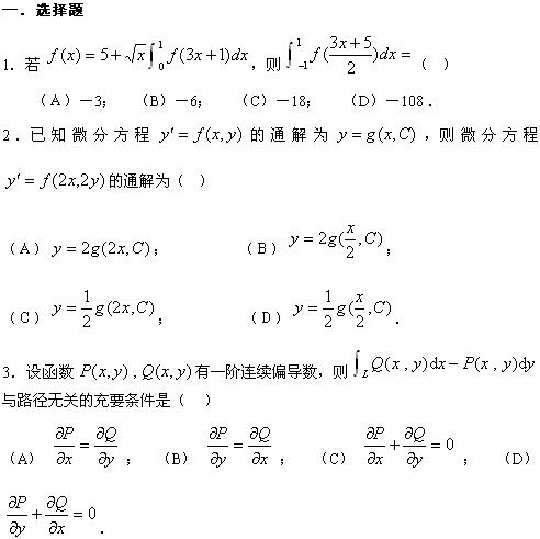 2010年考研数学一全真模拟卷及解析1