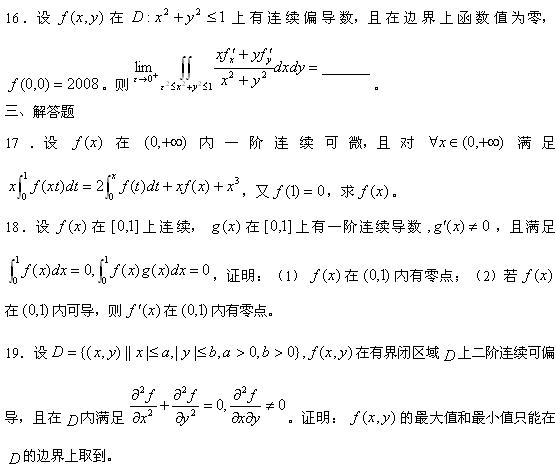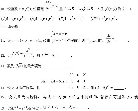 2010年考研数学二全真模拟卷及解析1