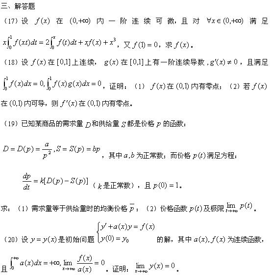2010年考研数学三全真模拟卷及解析1
