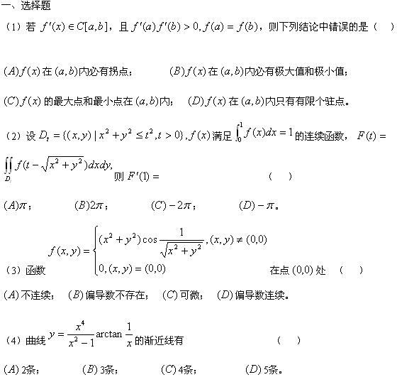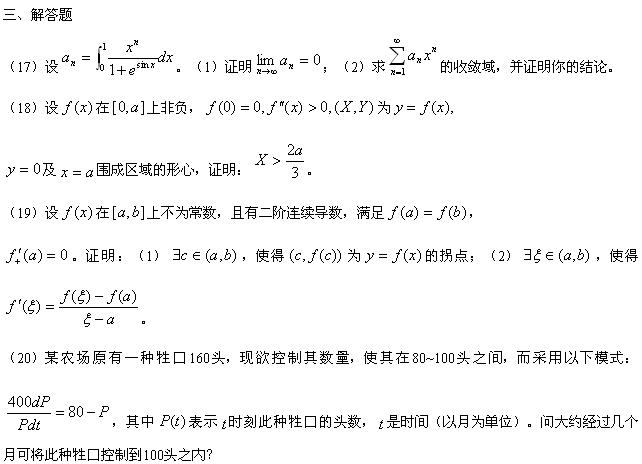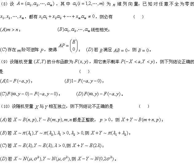 2010年考研数学三全真模拟卷及解析2