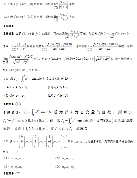 2012年全国研究生考试数学一试题解析
