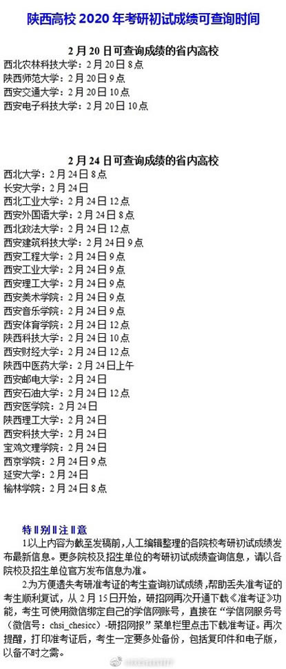 陕西28所高校公布2020年考研初试成绩可查询时间